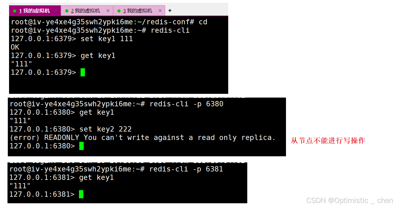 所以复制的数据流只能由主节点到从节点 ,那么如果从节点的数据发生变化要怎么同步数据呢?其实从节点的数据根本不允许写数据。 更准确的是,主从复制主要是针对"读操作",进行并发量&可用性的提高。而写操作的话,无论是可用性还是并发性,都是非常依赖主节点。