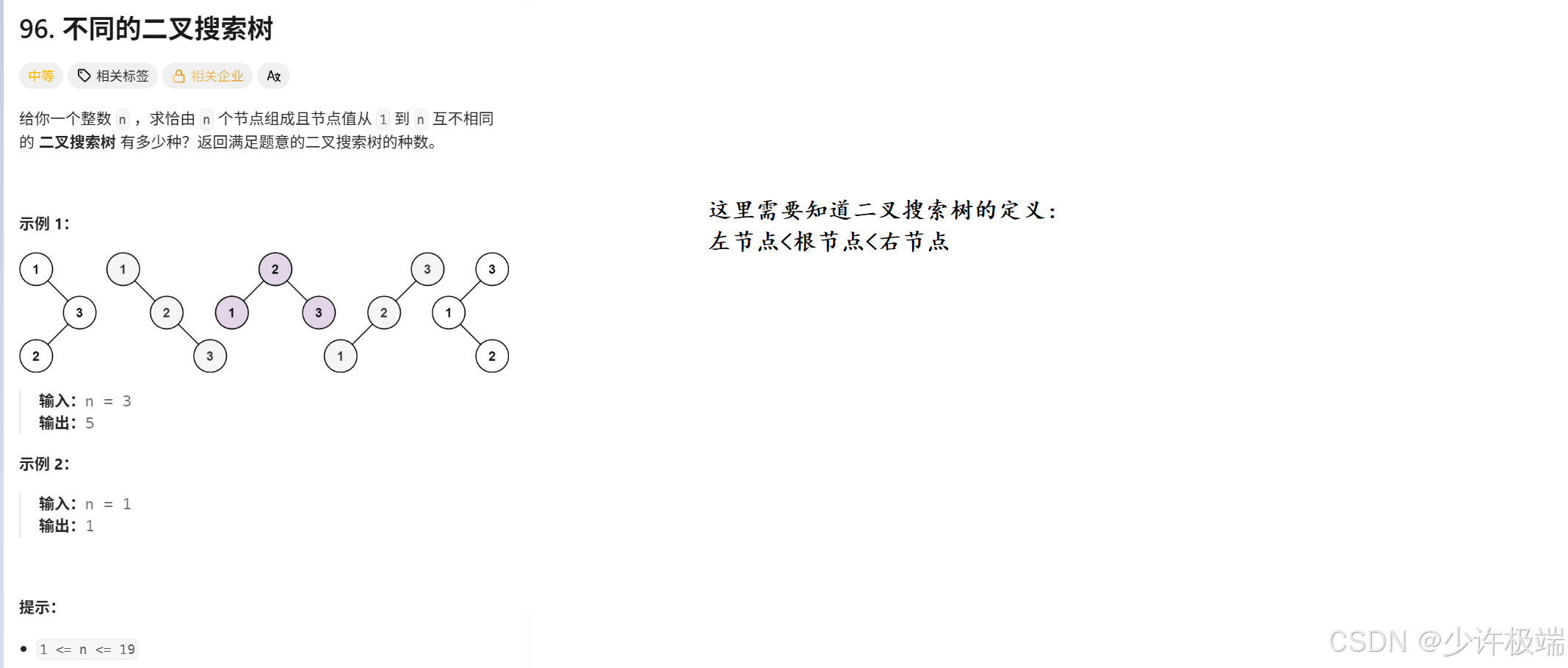 四. (卡特兰数) 力扣 96. 不同的二叉搜索树