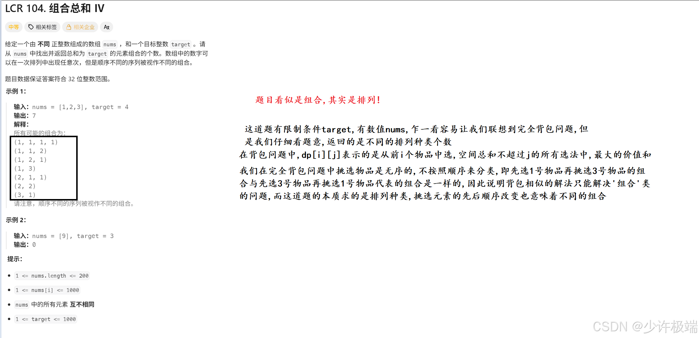 三. (似包非包问题) 力扣 377. 组合总和 Ⅳ