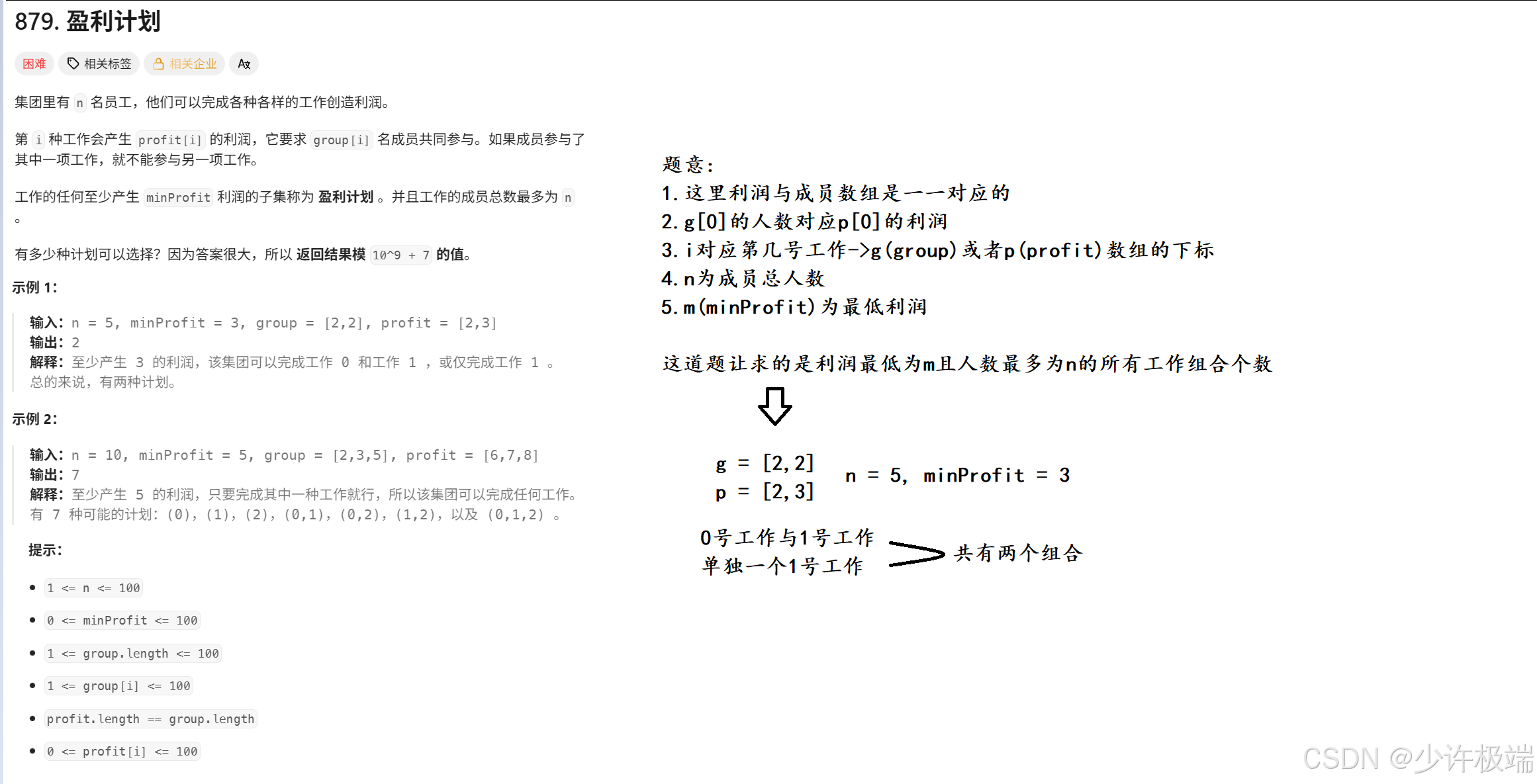 - [二. 力扣 [879. 盈利计划](https://leetcode.cn/problems/profitable-schemes/description/)](#二. 力扣 879. 盈利计划)