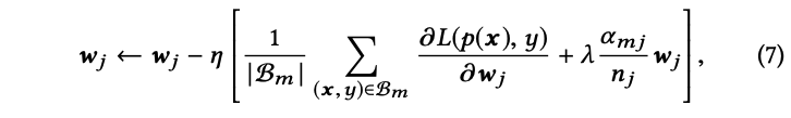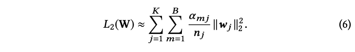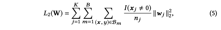 通过这种方式,可以推导出近似的小批量感知版L2正则化方法。对于第m个小批量,特征j的嵌入权重的梯度为: