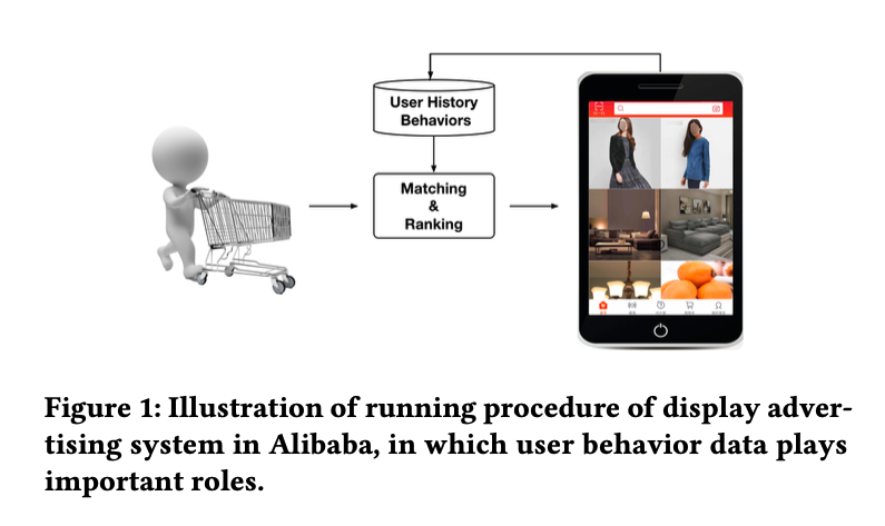 与搜索广告不同,用户在进入展示广告系统时通常没有明确表达意图。因此,在构建点击率(CTR)预测模型时,需要有效的方法从丰富的历史行为中提取用户兴趣。