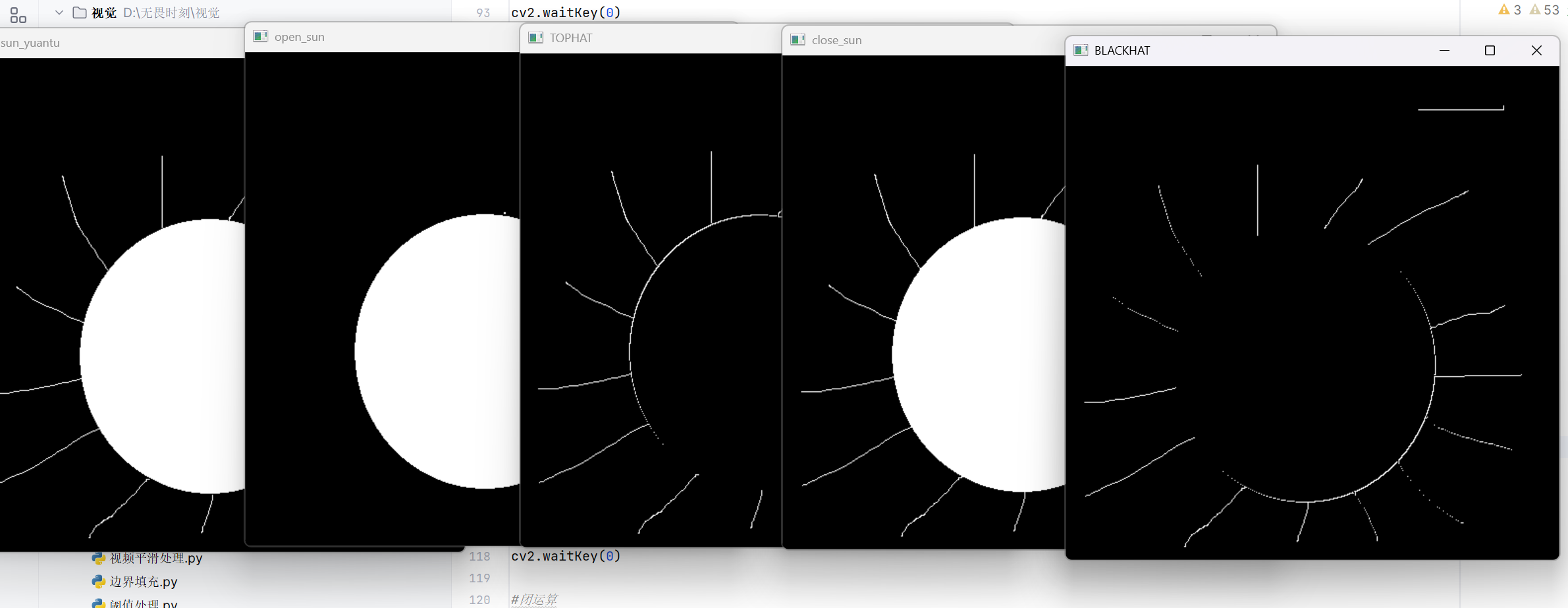 顶帽/黑帽 :顶帽=原始图像-开运算结果(提取亮细节);黑帽=闭运算结果-原始图像(提取暗细节)。函数分别对应