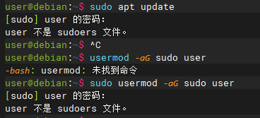 以 root 身份 或 已有 sudo 权限的用户 登录,才能将用户(如:user) 添加到 sudo 组。