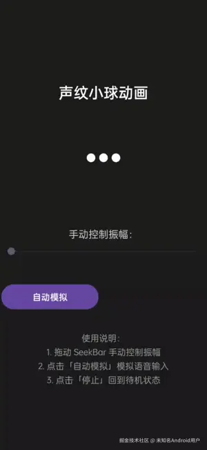 - 待机状态:小球轻微起伏,呈现呼吸效果(使用正弦波实现)