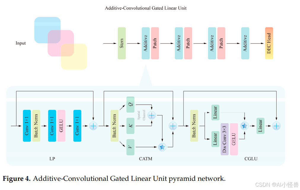 (2)提出了一种新的Add-CGLU(加性卷积门控线性单元)金字塔网络,通过加性融合和门控机制提升特征的表征能力和信息传递效率,帮助网络更好地捕捉复杂场景中的小目标,以处理多尺度变化。