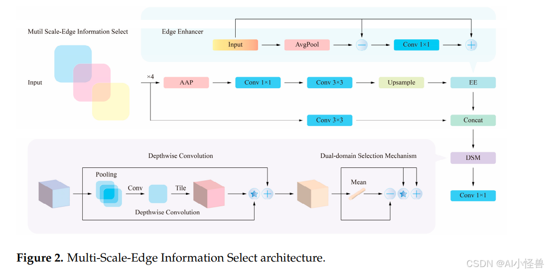 (1)设计了一种新的MS-EIS(多尺度边缘信息选择)架构,通过选择性地聚合多个尺度的边缘和纹理信息,增强细粒度特征表示,以应对复杂背景下小目标和目标检测的难题。