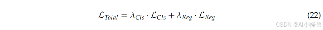 DEC 检测头的末端包含两个子模块:Cls Conv(分类卷积)和 Reg Conv(回归卷积),分别用于目标类别预测和边界框回归。Cls Conv 将特征图映射到类别空间,并使用 Sigmoid 激活函数生成每个锚框的类别概率,而 Reg Conv 输出每个锚框边界框的回归参数。Cls Conv 中的参数也是共享的。无论是小目标、中目标还是大目标,对于分类学习来说都是相同的目标。DEC 检测头使用可分离的损失函数,包括分类损失和回归损失,可表示如下: