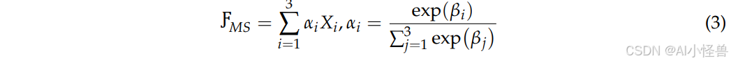 不同尺度的池化保留了多层次特征,提高了对小型目标和复杂背景的适应性。多尺度池化还提取了不同大小的局部信息,有助于捕捉图像的多层次特征。然后使用Softmax对不同尺度的特征进行加权,从而实现更平滑的融合,无需依赖手动配置的超参数。最后,融合后的多尺度特征ƑMS计算如下: