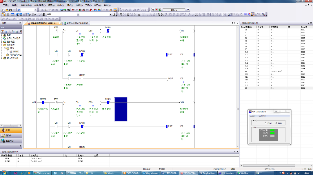 上面这段代码很简单,当外部输入点 X0 有信号时,就会置位辅助继电器 M0。这是程序逻辑判断和后续操作的基础,就像给整个定时控制体系打开了一个"开关"。