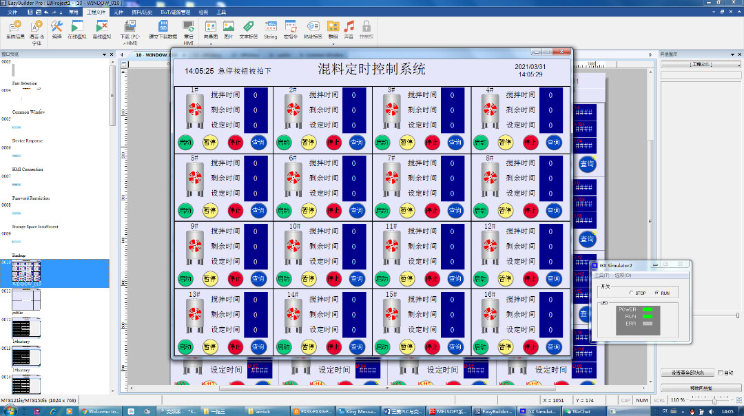 在工业生产中,对设备的精准定时控制至关重要。今天就来聊聊 16 台搅拌机的定时控制程序开发,我们选用三菱 FX 系列 PLC 搭配威伦通触摸屏,打造一套完善的控制体系。