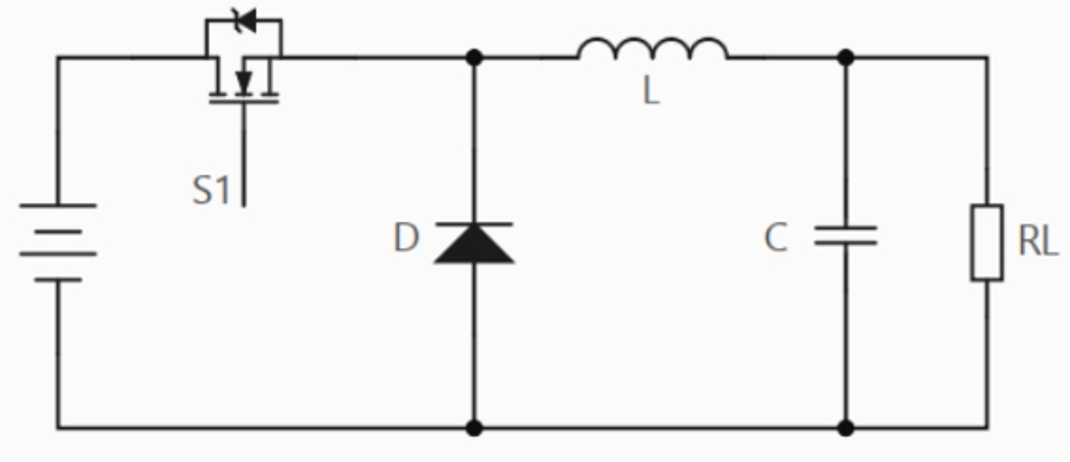 控制器让 MOSFET(S1) 导通,直接把电感的后端接地(GND)。