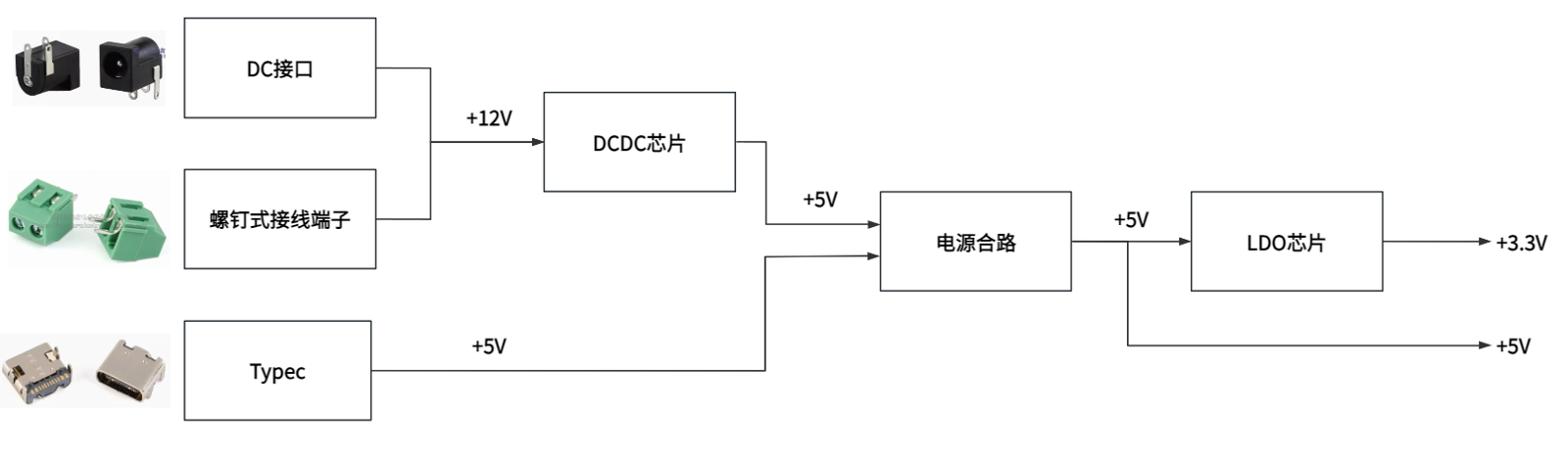 上图为"电源树",简单来说就是画清楚电流是如何从"入口"一步步流向每一个"芯片"的。