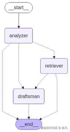 其他代理(retriever_node 和 draftsman_node),遵循类似模式,读取黑板当前状态并添加自己的贡献。