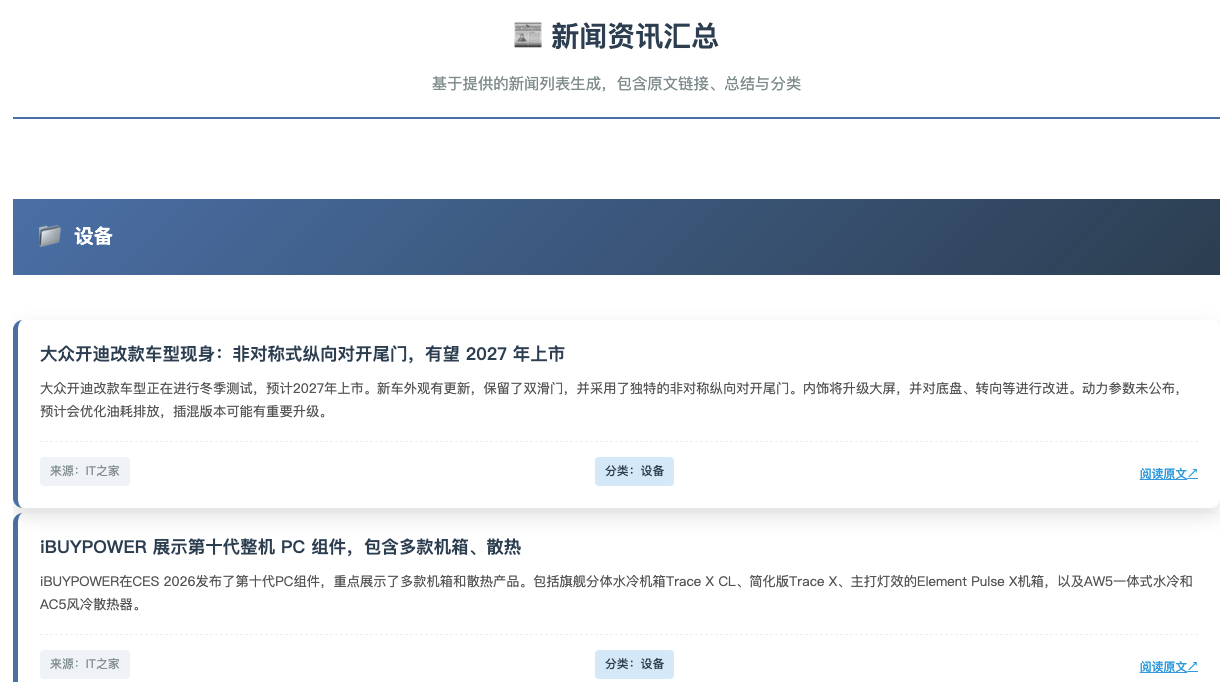 读取网页的新闻,利用大模型进行总结,生成新的html页面,通过邮件定时发送