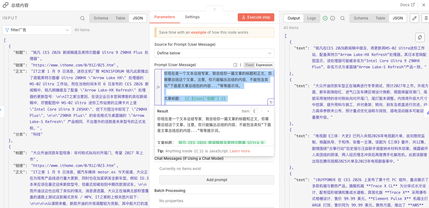 文章正文:{{ $json['正文'] }}