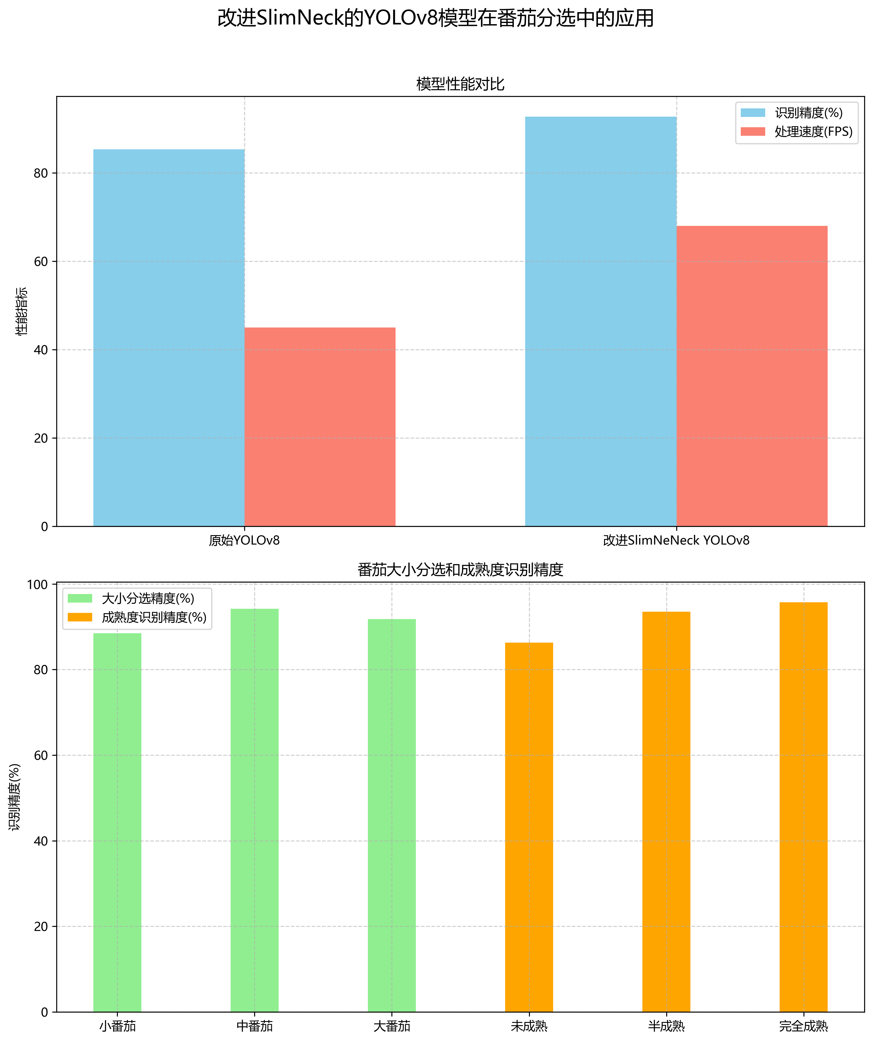 在番茄大小分选应用中,基于改进SlimNeck的YOLOv8算法通过以下方式提高分选精度: