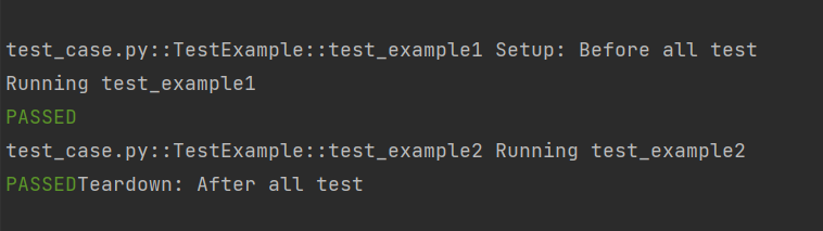 - setup_class/teardown_class :作用于整个测试类,仅在类中所有用例执行前、执行后各触发一次。