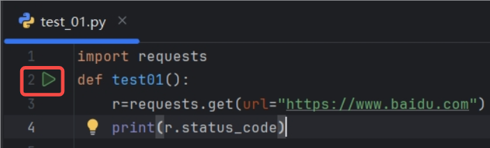 test01)前会出现 "运行标记",可直接点击运行,且运行后会显示测试结果(通过 / 失败)。