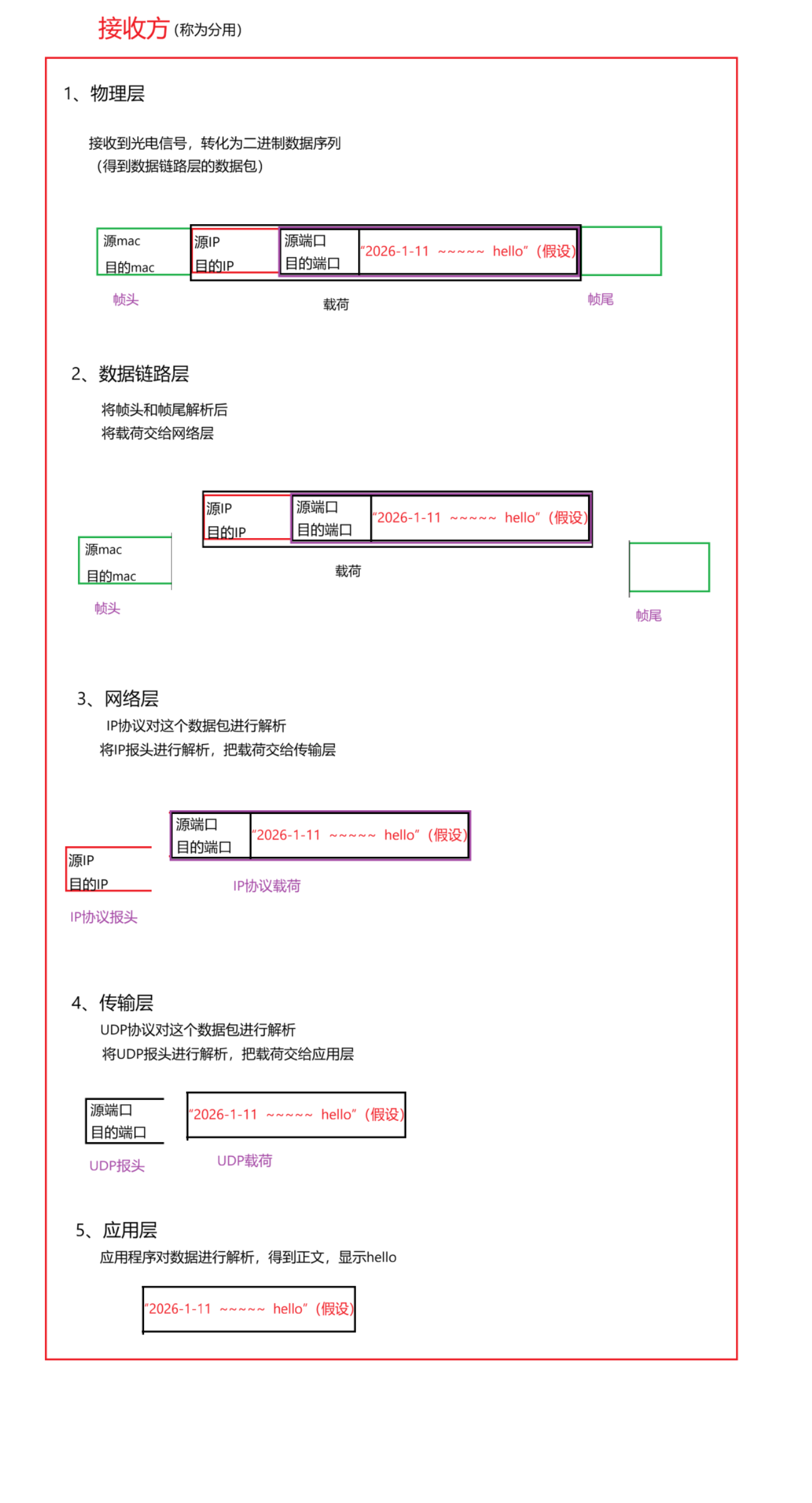 分用是封装的逆过程。当数据从下到上通过各层时,每一层都会剥去对应层的协议头,提取出真正的数据部分,并格局头部信息将数据交付给上层的正确协议或应用。
