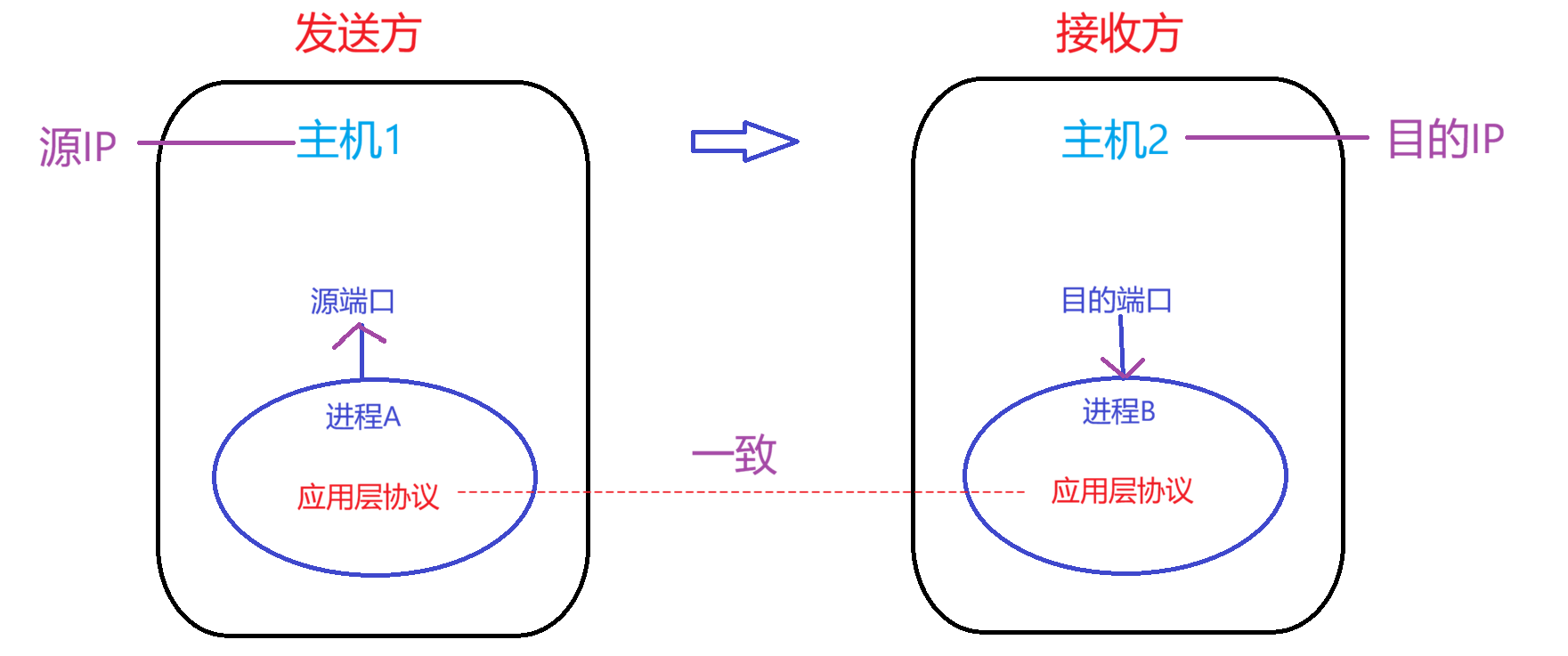 - 协议号:标识发送进程和接收教程双方约定的数据格式