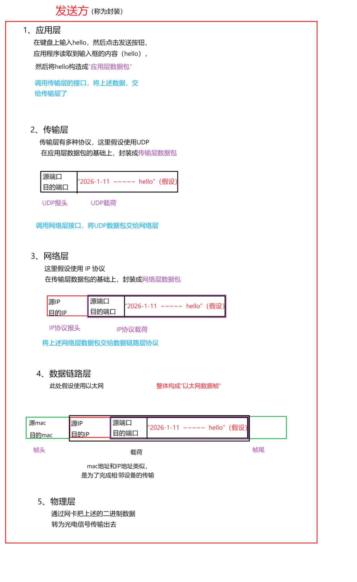 两台主机之间的网络通信流程,本质上是数据从应用层逐层封装------>通过网络传输------>对端逐层解封装------>交给应用程序 的过程。