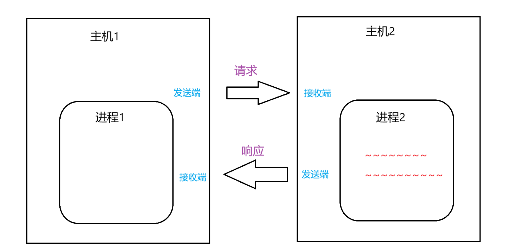 以发送消息(hello)为例,简化通信过程,只考虑发送端和接收端:
