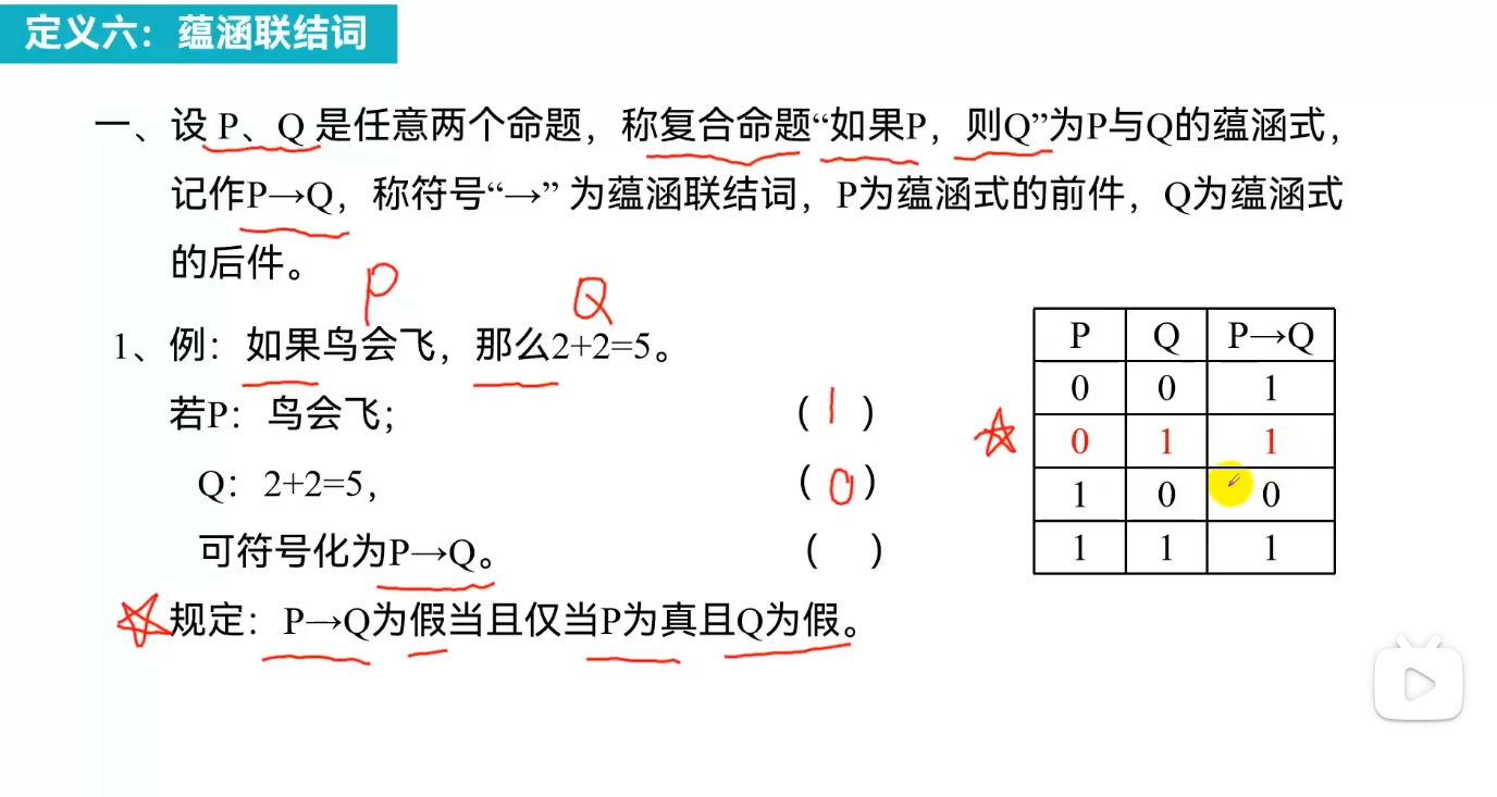 - 关键是只有P真Q假的时候 才算假 0
