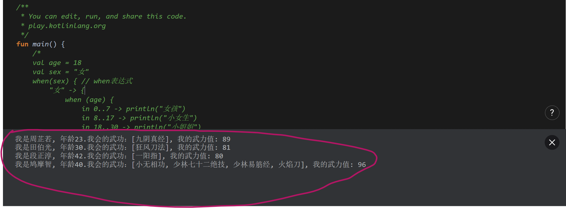 val zhouzhiruo = Daxia("周芷若", 23, listOf("九阴真经"), 89)