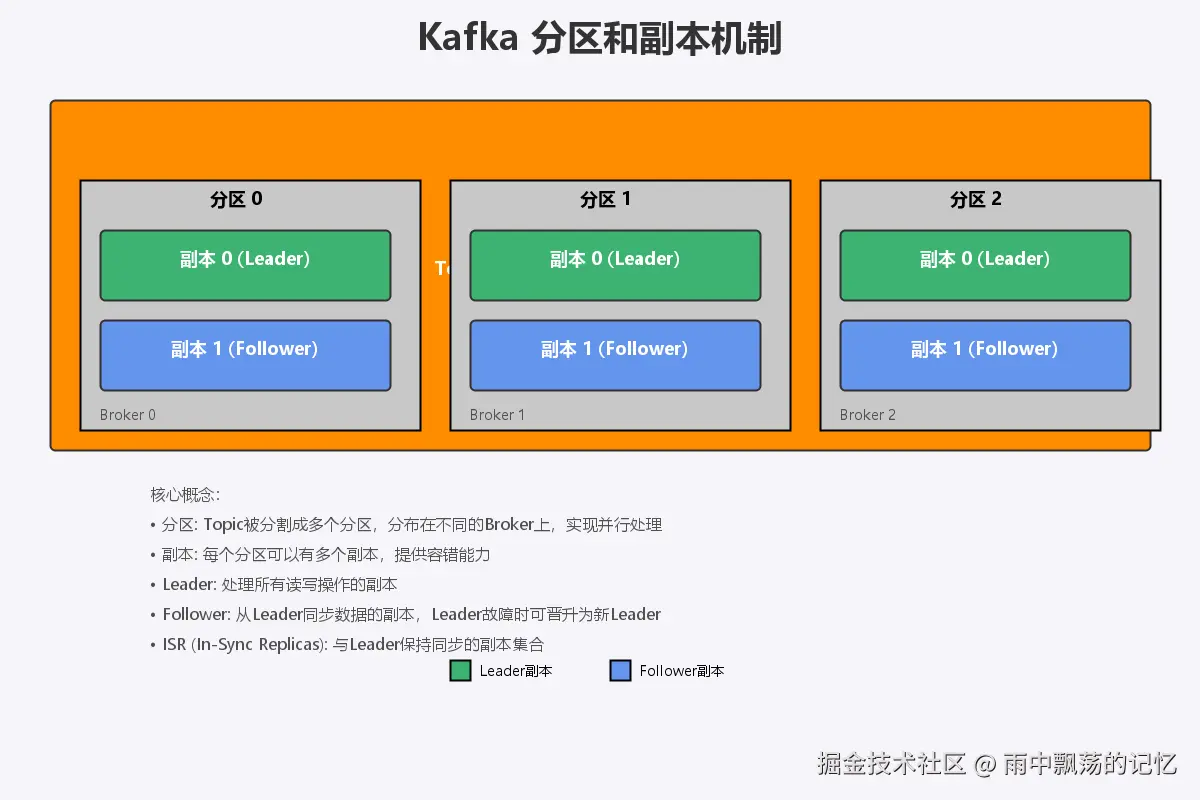 - Follower副本:从Leader同步数据,Leader故障时可晋升为新Leader