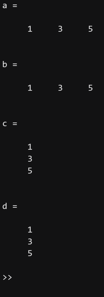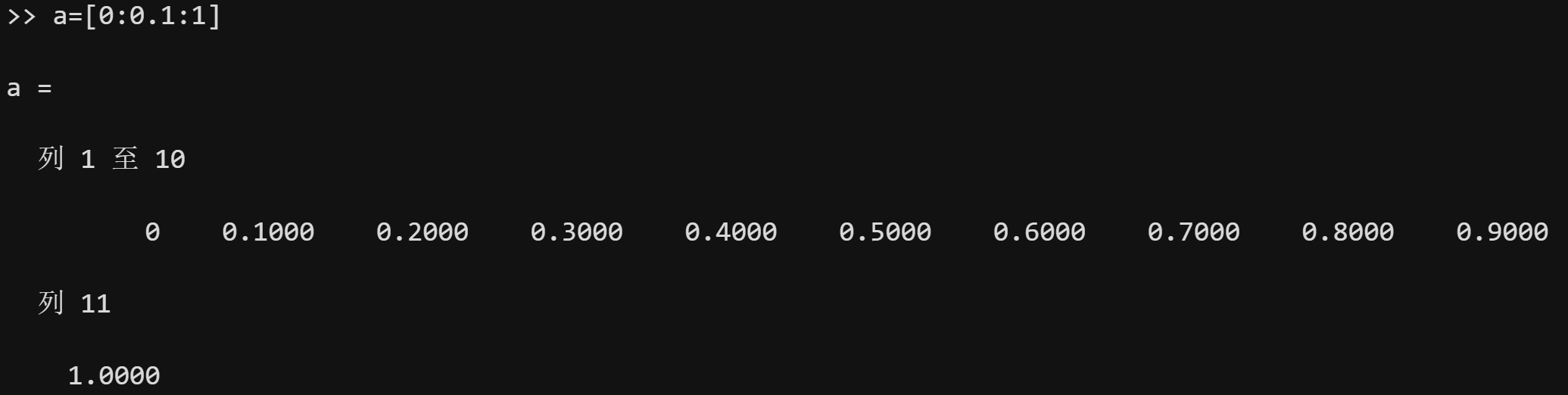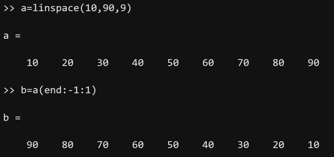 (2)linspace生成的向量的最后一个元素一定是b ,而使用冒号法A:step:B生成的向量的最后元素不一定是b。
