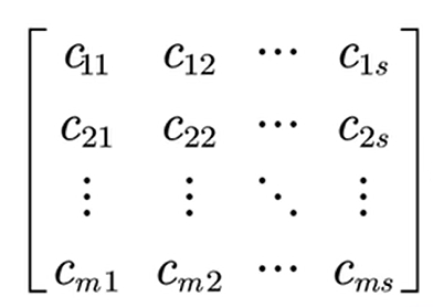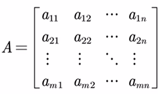 由m×n个元素组成的m行n列的数表(如下图)称为一个m×n阶矩阵,记为