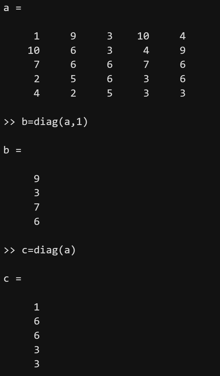 diag函数可用来创建对角矩阵或者获取矩阵的对角元素