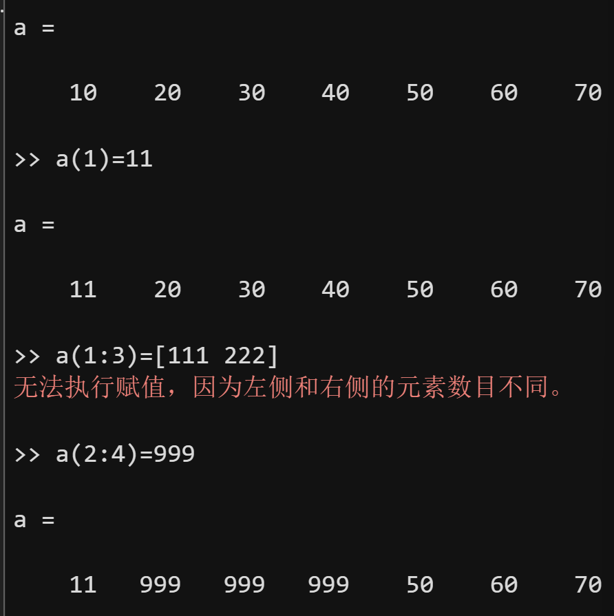 有同学会想,假如我不知道向量a中有多少个元素,也不想使用length函数或者numel函