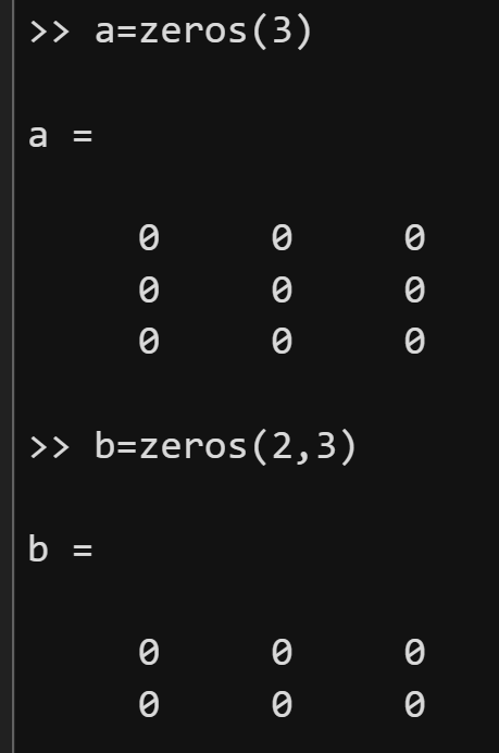 (2)zeros(m,n)可以创建一个m行n列全为0的矩阵。