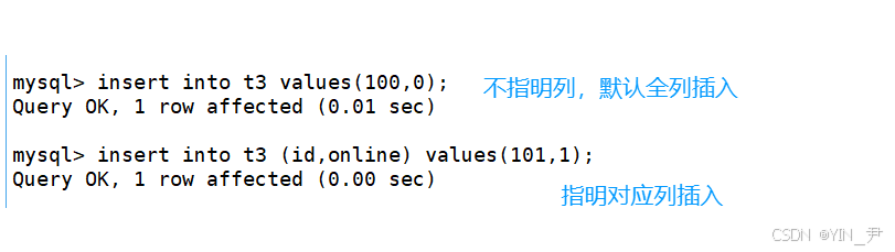 不指明哪一列插入默认就是全列插入,当然该表也只有一列