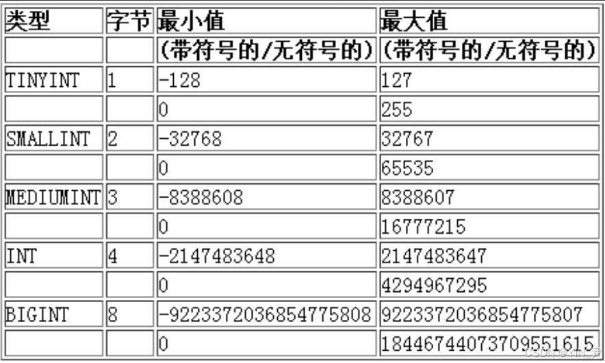 即在MySQL中,整型可以指定是有符号的和无符号的,默认是有符号的。