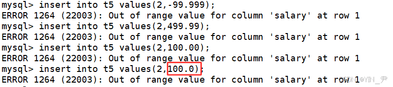 前两个可以,因为舍掉了,存的是99.99,在范围内。后两个不行,因为要入,入完就超过99.99(最大值)了,所以插入失败