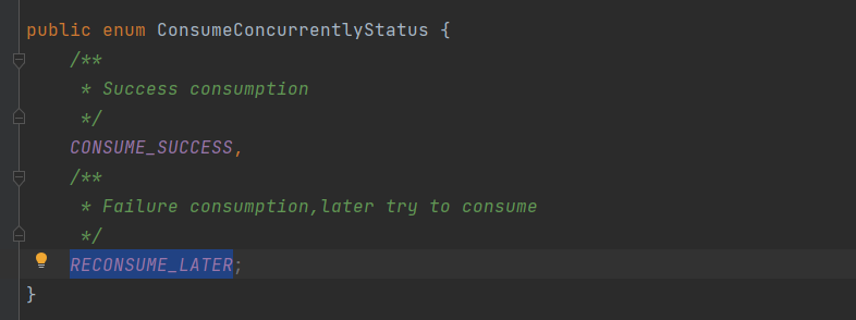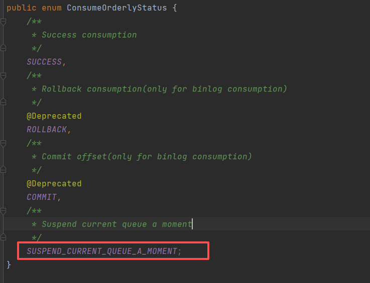 相反如果选择的是MessageListenerOrderly, 那么就会返回SUSPEND_CURRENT_QUEUE_A_MOMENT。