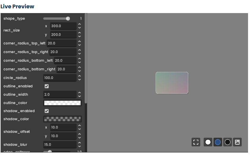 // Shape type: 0=Circle, 1=Rounded Rectangle