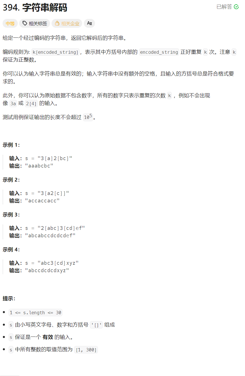 2)如果碰到纯字母(非 [ 后面的字母),就让把这些字母提取出来拼接到 string 栈栈顶元素的后面: