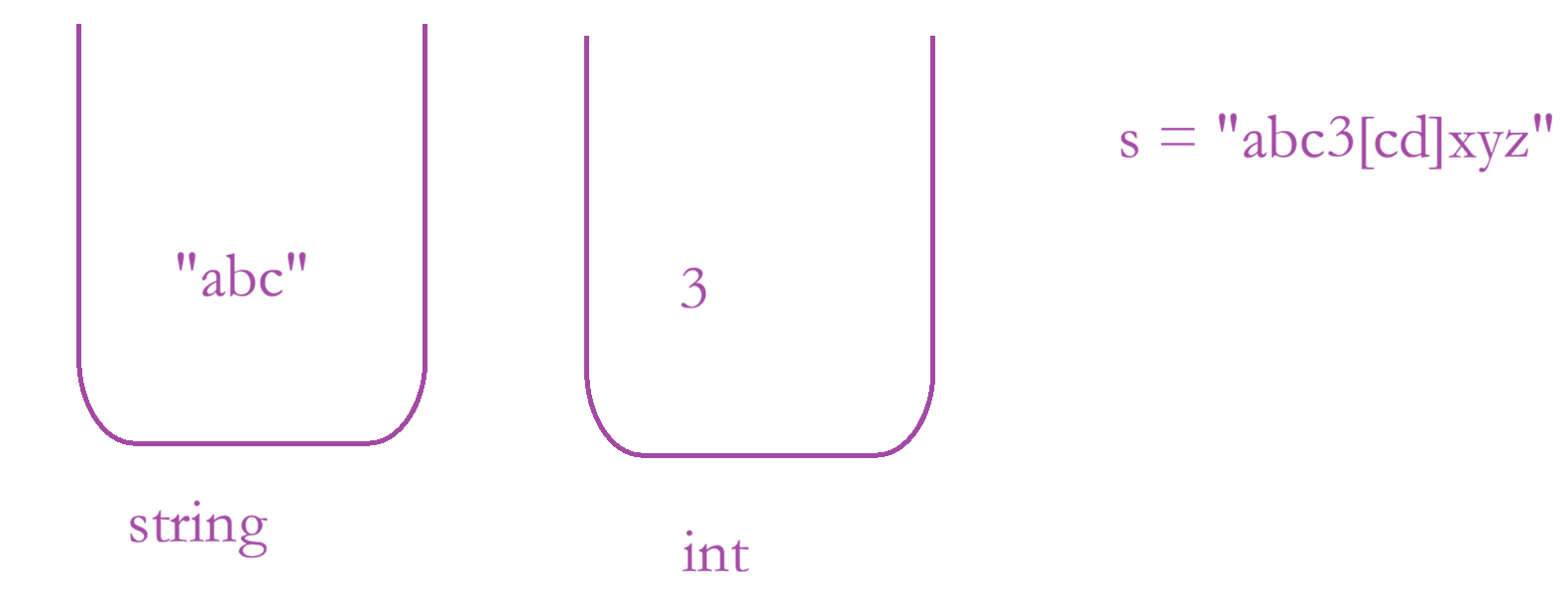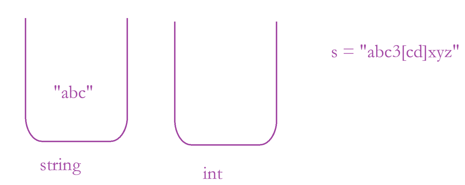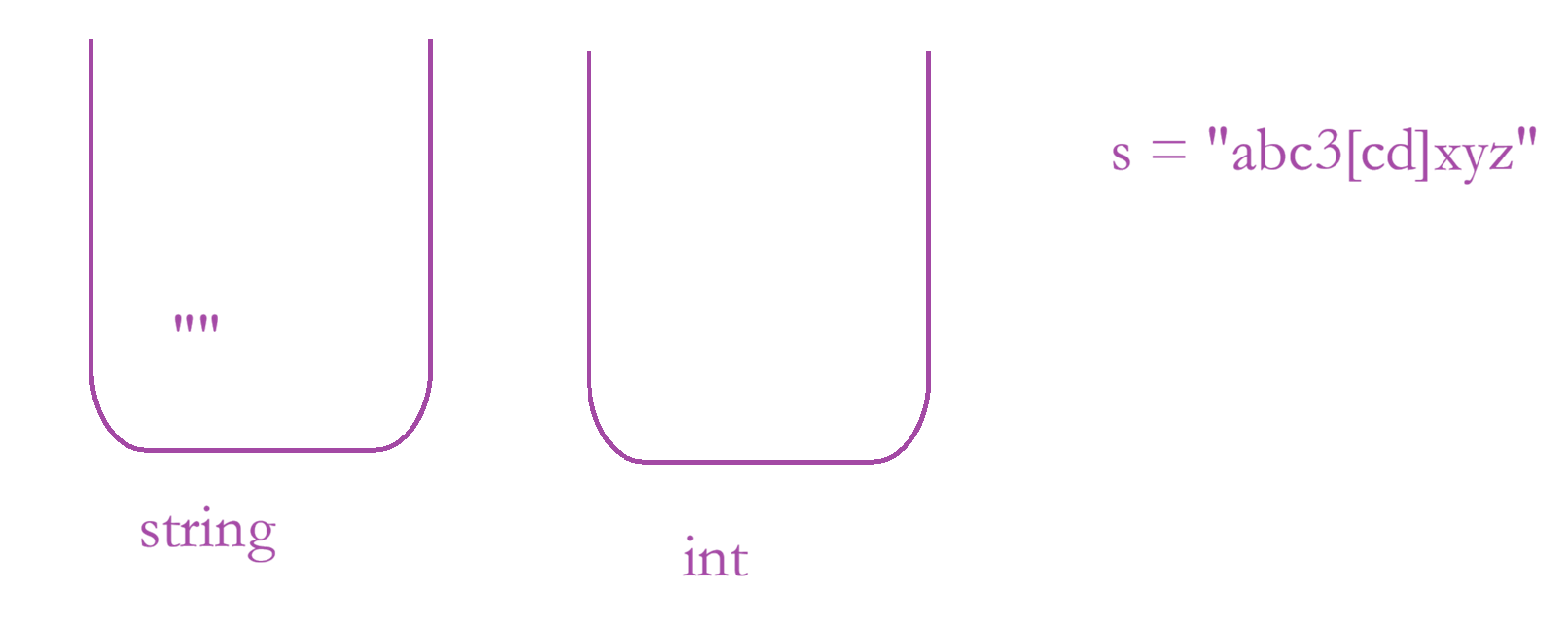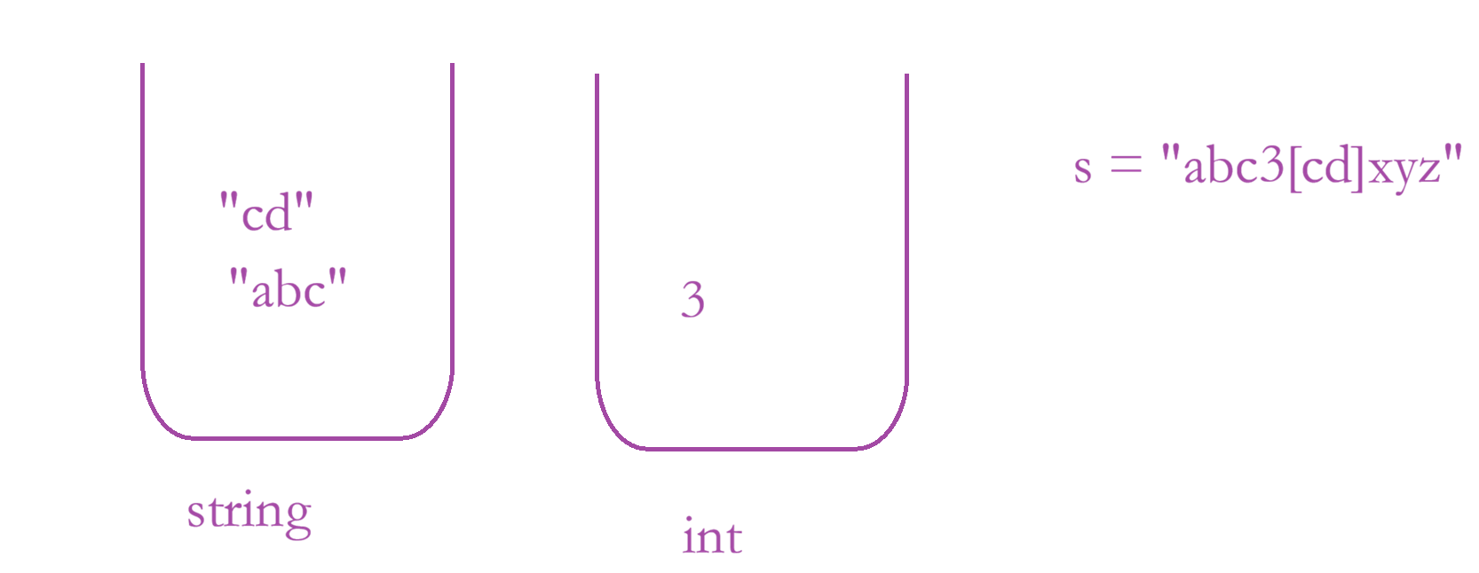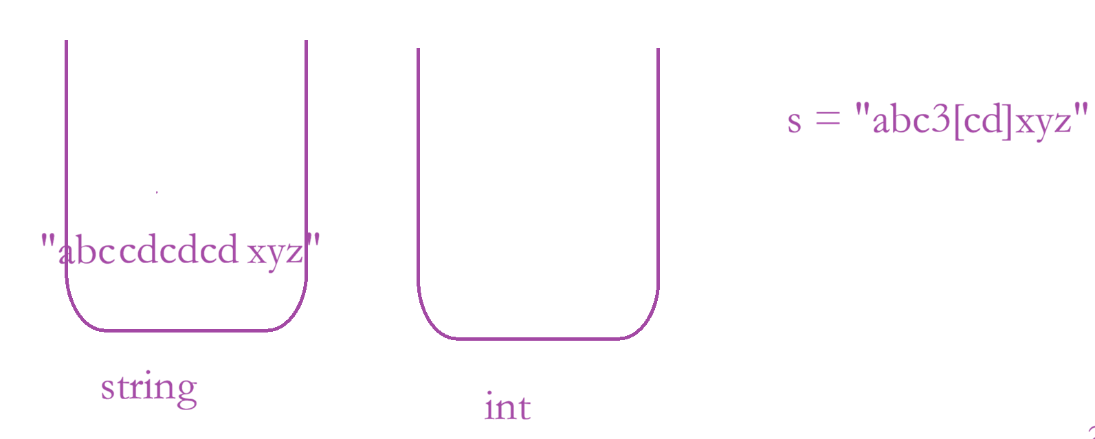 思路:使用双栈,一个栈原来存储字符串,另外一个存储整型数字;