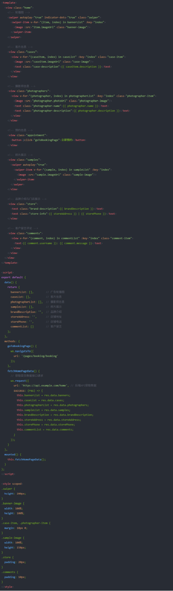数据库:使用 MySQL 来存储用户信息、预约信息、摄影师资料、婚纱样片、拍摄地点等数据。