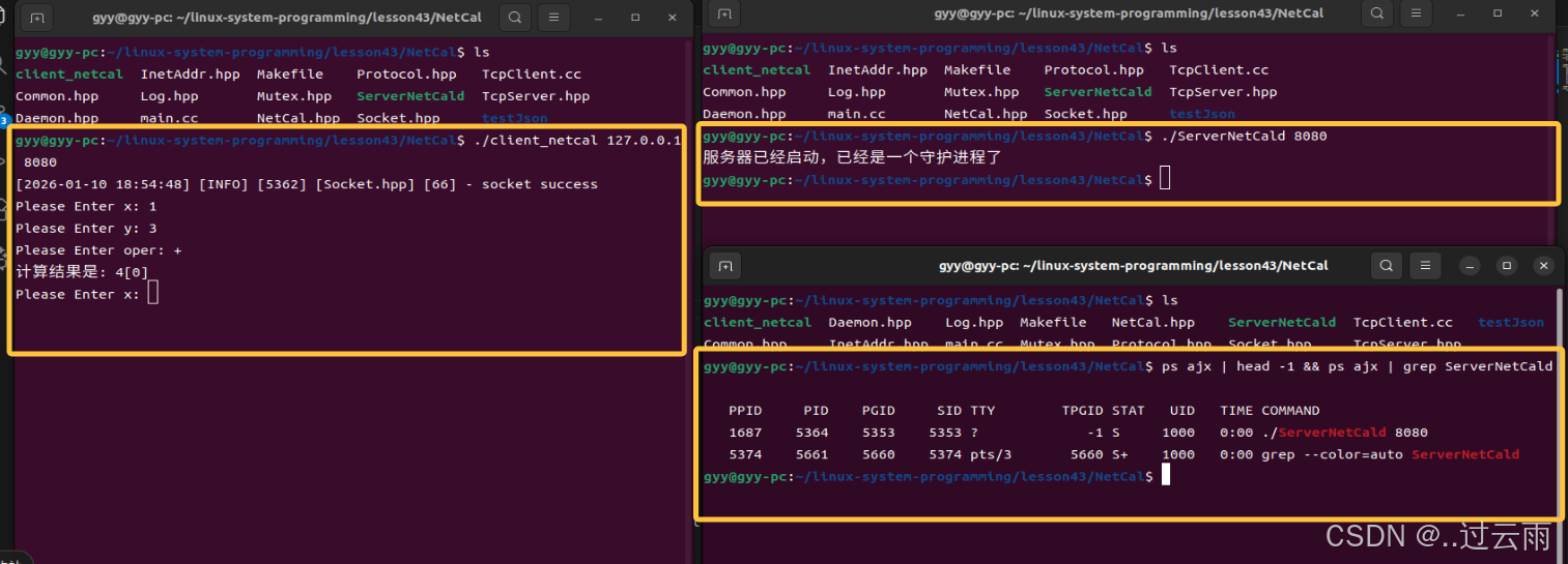 补:按理说ServerNetCald运行之后,他应该只有一个孤儿进程,他的父进程应该是1。但是在我的虚拟机上运行,他的父进程不是1(我也验证了我老师的代码,运行之后和我的输出一样),但是我关闭ServerNetCald的父进程,虚拟机就关机了?