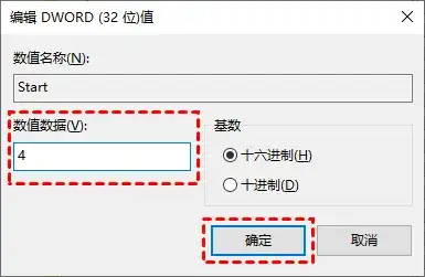 3. 在弹出的窗口中将"数值数据"改为"4",并单击"确定"。
