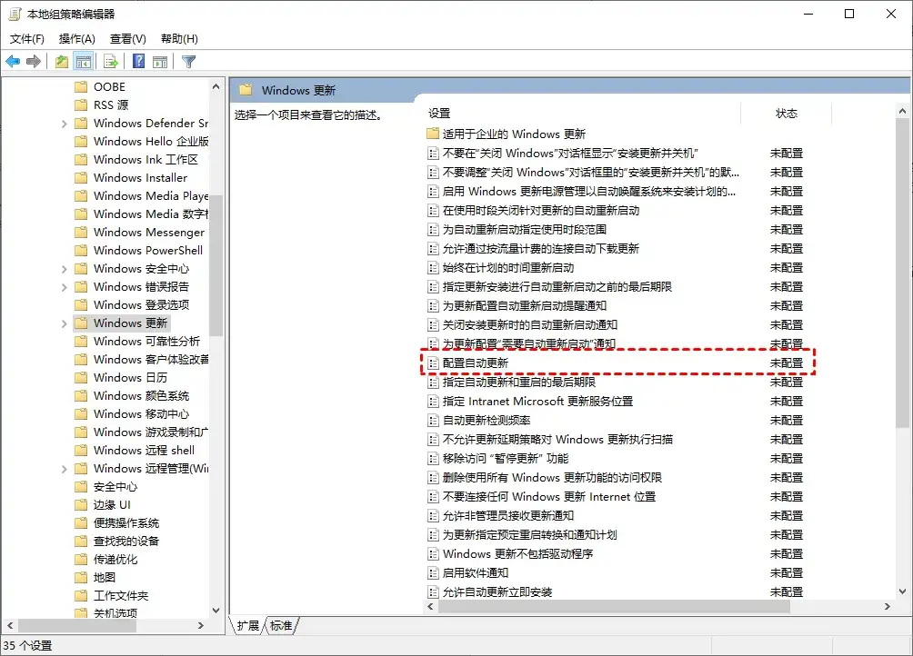另一种Win11关闭自动更新方法就是通过更改本地组策略编辑器中的"配置自动更新"和"删除使用所有Windows更新功能的访问权限"选项来关闭Win11自动更新。