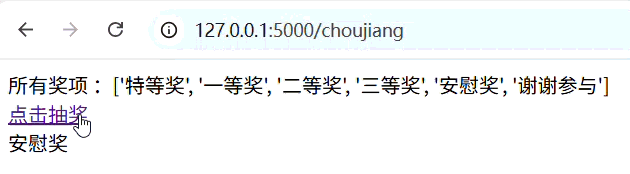 原始代码需要每次刷新才能实现一次抽奖,实际用户不可能如此操作。现增加抽奖链接,点击即可实现一次抽奖。