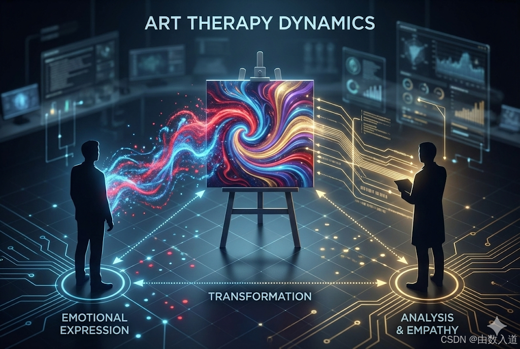 - 来访者 →\rightarrow→ 作品: 通过创作将内在体验外化为非语言符号。