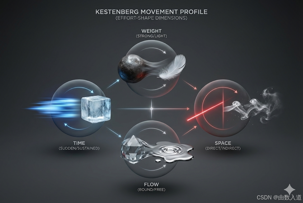 - 时间 (Time Effort) : 描述动作的快慢节奏。