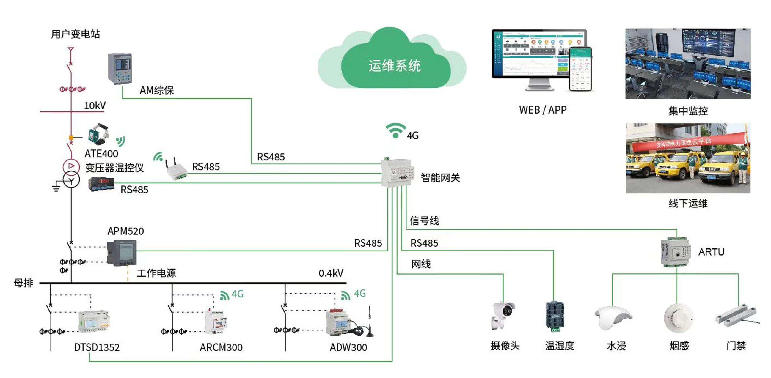安科瑞电力运维云平台基于物联网、云计算、大数据技术,通过部署智能采集终端,将分散的变配电所、用能设备进行全景互联,形成一个集实时监控、智能预警、高效运维与深度分析于一体的智慧电力运维大脑。
